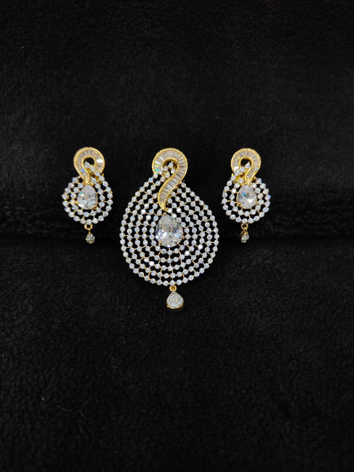 GOLD POLISH AD ZIRCON STONE PENDANT WITH EARRINGS