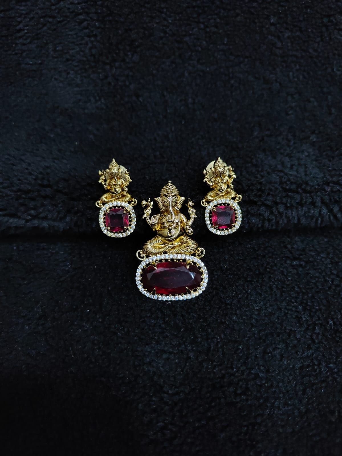 GANESHA ANTIQUE PENDANT WITH EARRINGS