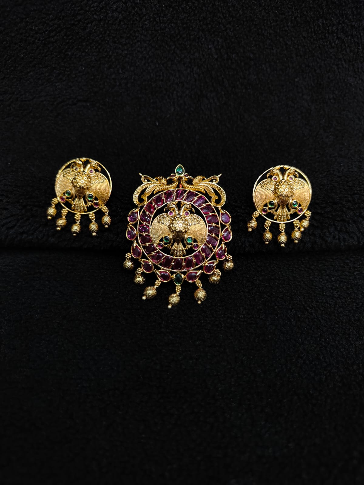 PEACOCK DESIGN ANTIQUE PENDANT WITH EARRINGS