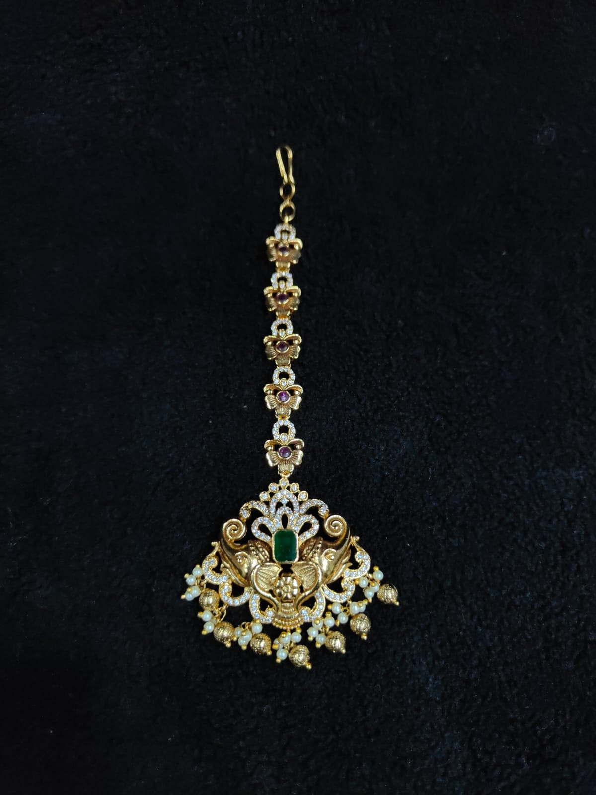 ELEPHANT AND FLORAL DESIGN ANTIQUE TIKKA WITH PEARL GOLD BALL HANGING