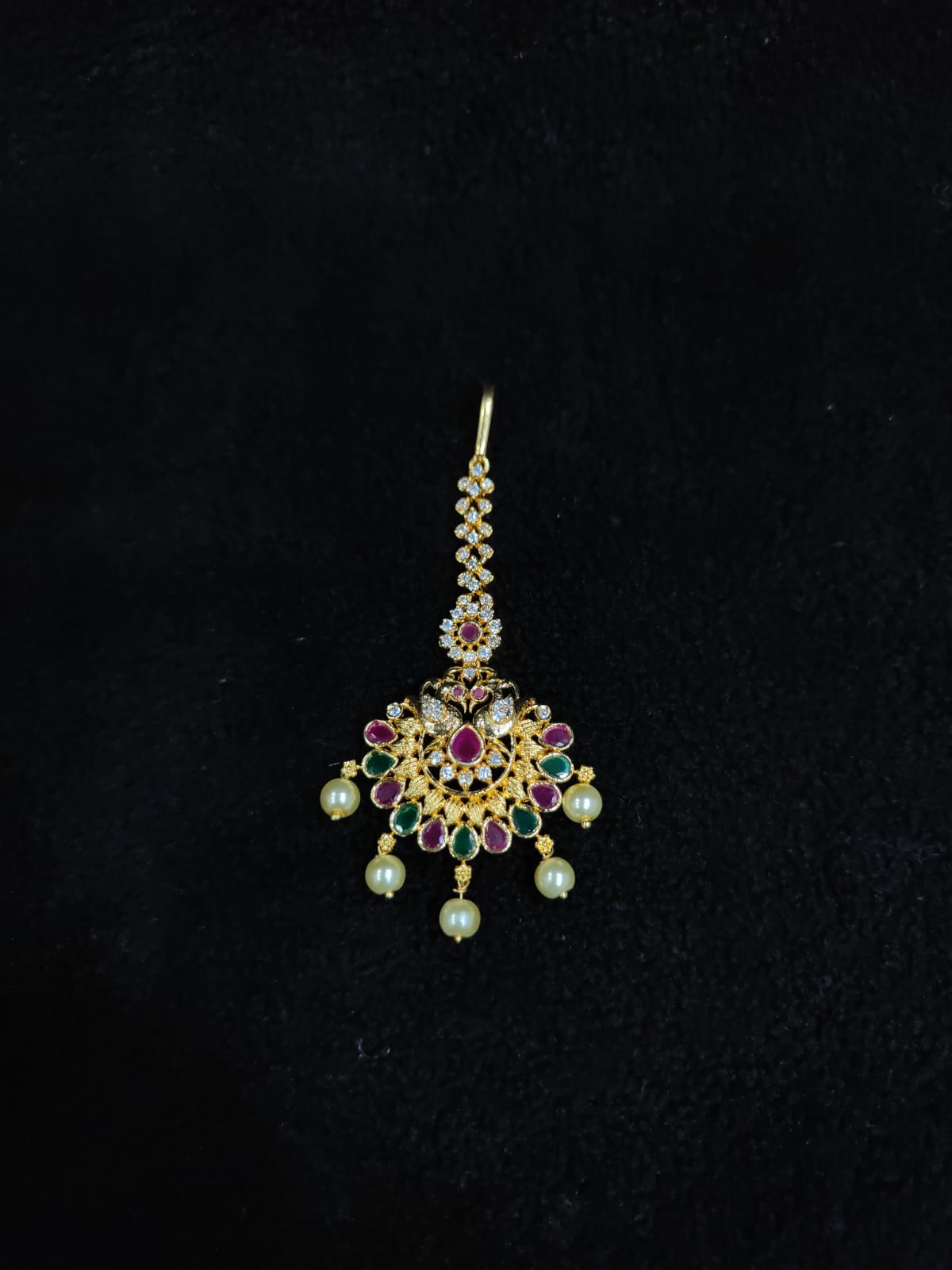FLORAL DESIGN GOLD FINISH STONE TIKKA WITH PEARL